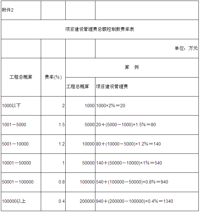2.項目建設管理費總額控制數費率表